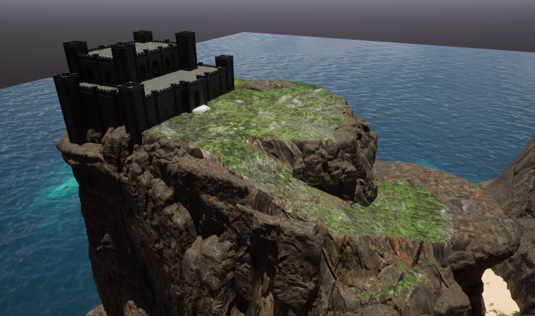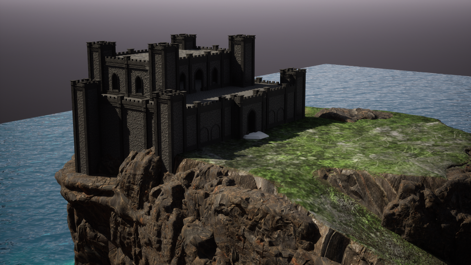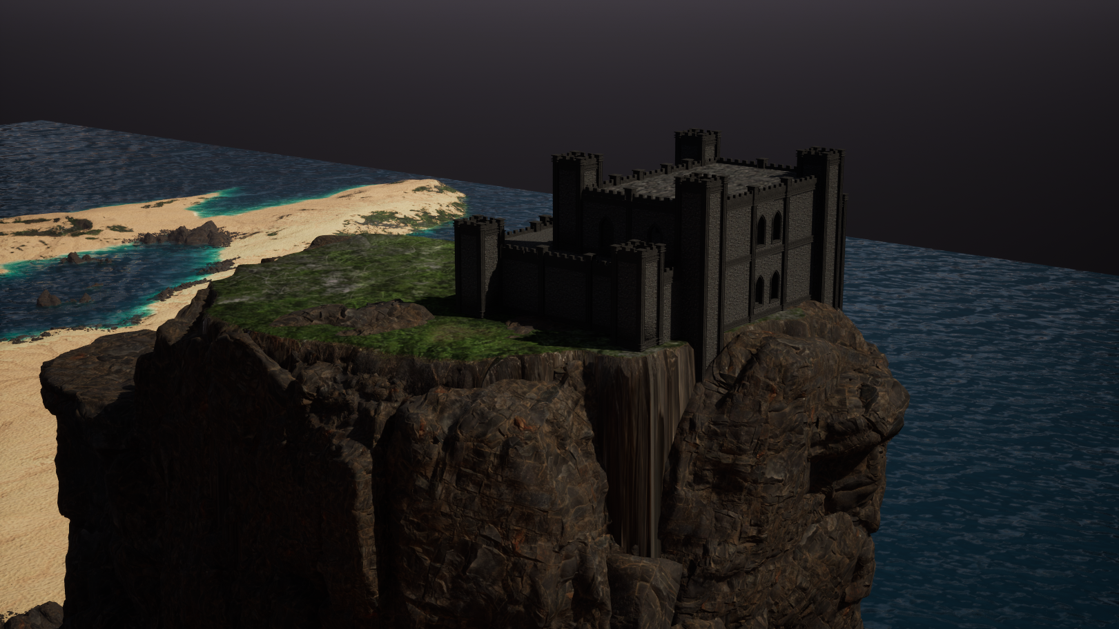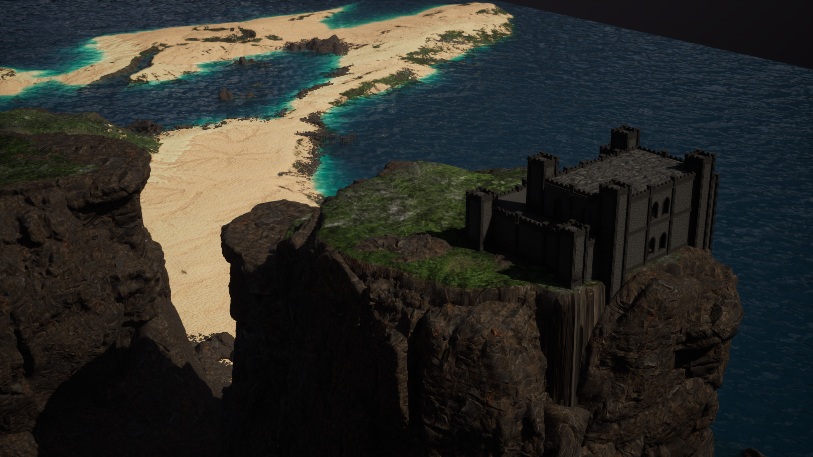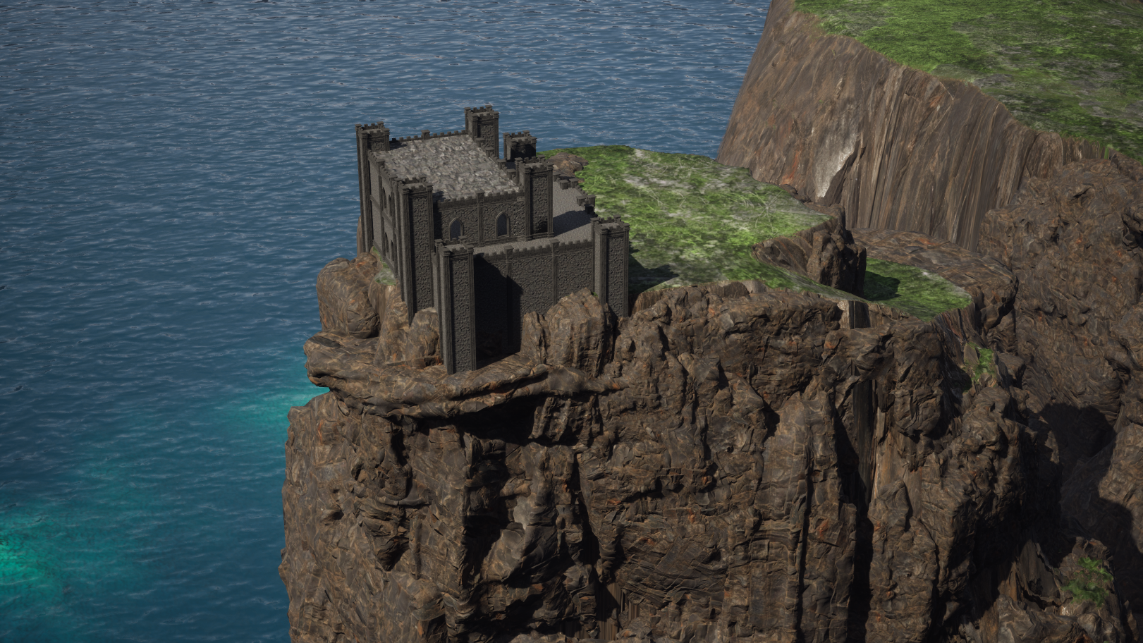 The Harbinger’s Keep is a tall structure, with no exterior surrounding walls, that sits atop a tall stone spire off the coast.